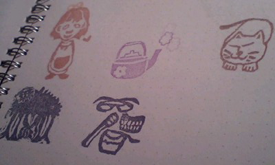 前からやってみたかった、「はんこ以外の背景や紙にはんこ押す。」てのが実現した。嬉しい。