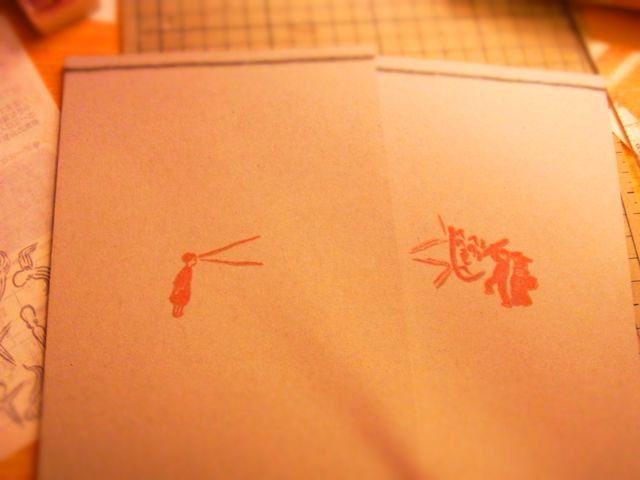 本は、こんくらい作りました。100部限定と先日書きましたが、2冊セットで1部なので、50部限定だと気づきました。お手に取ってご覧頂けたらと思います。表紙が3種類、微妙に違います。(本当に微妙に)はんこの色決め用の紙たち。