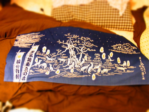 大晦日は王子の狐祭りに行って来ました。深夜にちょうちんぶら下げて神社まで練り歩く、なんともヘンテコな風景でした。観てる人も狐のお面を頭に付けてて、かなりファンタジーな空間でした。面白かったです。来年はぜひ行列に参加したい。そして面をゲットしたい。かっこいいてぬぐいをゲットしました。かっこいい。