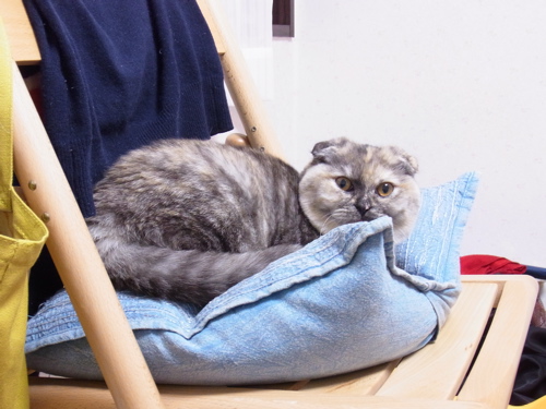 椅子にしがみつくうちの猫。