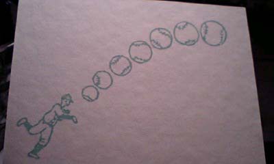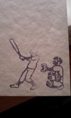 ピッチャーとキャッチャーとバッターが入ってます。バッテリーにしてもいいし、勝負!にしても良し、な、はんこセットです。