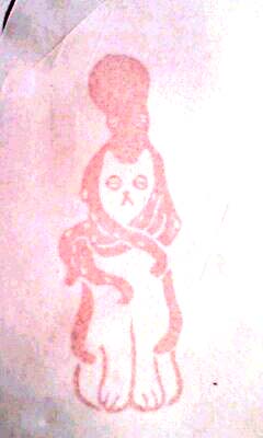 はんこは、おなじみ、こけしはんこ。と、新たに「猫タコ」はんこも彫ってみました。ブルータス(雑誌)の「民芸品とおみやげ」特集をぱらっと見ていたら目に入った人形「猫にタコ」。