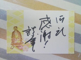先日の、立川談幸さんの落語会で来場者の方に配られたカードになんと、私の彫った拙いはんこが、使われていたとの報告を頂きました。