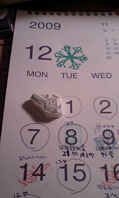 スケジュールにはんこが活躍してます。新たにはんこ制作日用のはんこを作りました。